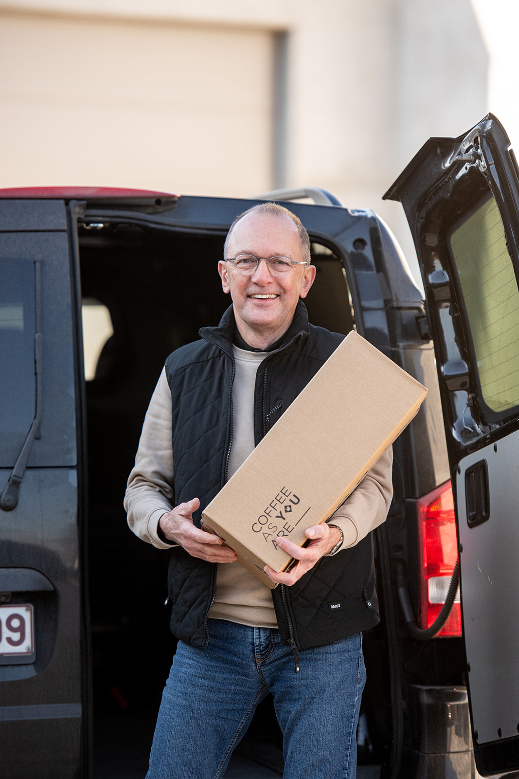 Dat hoeven we aan Johan geen twee keer te zeggen. Johan is onze chauffeur en voorziet onze B2B-klanten wekelijks van vers gebrande koffie. Dat doet hij steeds met de grootste zorg en een glimlach!